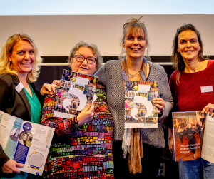 De bijeenkomst werd afgesloten met een feestelijk moment: de uitreiking van ons jubileummagazine. Deelnemers Stephanie en Jacqueline, intermediair Kim en zumba-instructrice Danielle deelden hun verhalen in het magazine. Zij ontvingen een eerste exemplaar uit handen van Tessa Brouwer en Astrid van Veldhuijzen, allebei vanaf de oprichting betrokken bij het Volwassenenfonds. Benieuwd naar het magazine? Bekijk het hier.