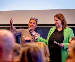 Nicole Huppertz, directeur sport en bewegen bij VWS en een belangrijke partner van het fonds, sloot zich hierbij aan. Ze onderstreepte het belang van bewegen en participatie voor iedereen: “Ons doel is dat in 2040 75% van de Nederlanders voldoet aan de beweegrichtlijnen. Maar we weten dat dit voor bepaalde groepen moeilijk haalbaar is. Daarom moeten we nóg beter samenwerken.” Ze riep partners op om buiten de eigen kaders te denken: “Stap over je schaduw heen en ga samenwerken, zodat we samen iedereen in beweging krijgen.”